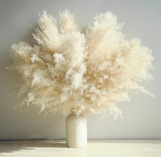 Dried pampas, bunny tails, or eucalyptus stems add texture and colour—without the upkeep of fresh flowers. They last forever and bring an earthy softness to a minimal space.