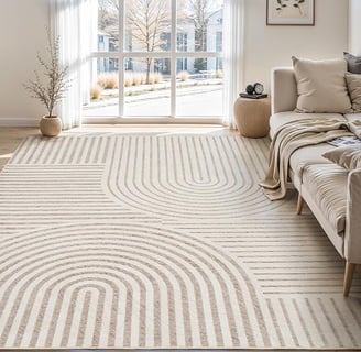 Area rugs in cream, beige, or light grey instantly brighten a room and give it a soft, high-end look. Look for patterns that are subtle and textures that feel cozy but clean.