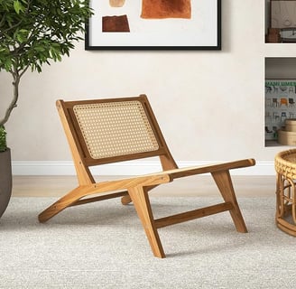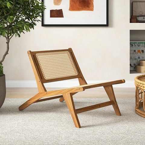 Accent chairs like this one with clean lines and warm wood tones add structure and sophistication. Even affordable versions can bring a designer look—especially if they lean mid-century or Scandinavian in style.